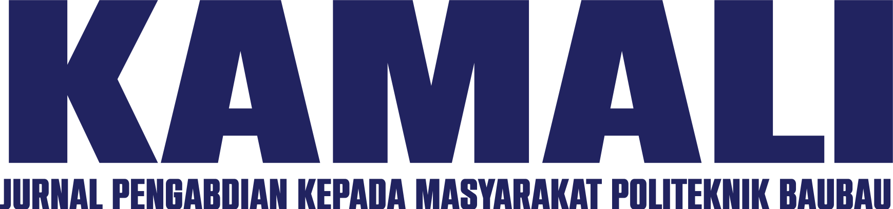 Journal title : Jurnal Pengabdian Masyarakat politeknik baubau ( Kamali) Abbreviation : KAMALI Frequency : 2 issues per year DOI : - ISSN : - Editor-in-chief : Abel haryanto,S.E.,MM Publisher : Politeknik Baubau Citation : Google Scholar | Garuda Journal of Community Service of Baubau Polytechnic (Kamali) is a Community Service Journal for the scope of Multidisciplinary Sciences, with scientific scopes such as Health (Nursing, Midwifery, Public Health, Medicine, Analysis, Medical Records etc.), Computer Science, Society, Management, Economics, Management, Religion, Law, Education, Agriculture, Literature, Engineering, and other fields of science. This journal is published twice a year in February and September